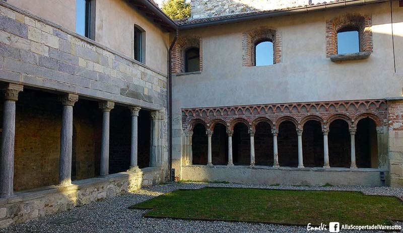 Der Kreuzgang besteht aus einem unregelmäßigen viereckigen Bauwerk und umfasst einen Teil der Apsis der Kirche. Die Besonderheit des Kreuzganges ist, dass jede Seite sich von der anderen unterscheidet. Insbesondere die Nordseite weist eine wesentlich wertvollere Konstruktion auf als die anderen Seiten. Die schönsten Kapitelle befinden sich eben an der Nordseite: Man kann geflochtene Bögen, abwechselnd zylindrische und achteckige Säulen und Kapitelle aus Stein von Viggiù bewundern. Diese sind außerordentlich sorgfältig und phantasievoll bearbeitet.