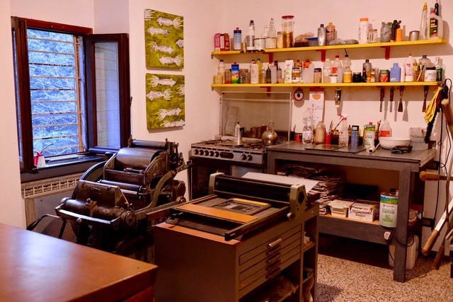 Die Drucker arbeiten hier noch mit traditionellen typografischen Techniken und Werkzeugen wie in früheren Zeiten. Ein Allround-Job, der mit dem Druck beginnt und mit dem manuellen Binden endet. Der Kulturverein, der die Druckerei der Turro-Mühle verwaltet, wurde 2019 gegründet, aber das Abenteuer „Rotte contrarie" hatte bereits einige Zeit zuvor begonnen. Giancarlo Bianchi, der Präsident der Vereinigung, war der erste, der sich der traditionellen Druckgraphik widmete. „Bei jedem Band legen wir großen Wert auf Form, Bilder und Verzierungen. Die Bücher, die wir machen, werden normalerweise von lokalen Autoren, Dichtern oder Schreibbegeisterten geschrieben". Vom Druck mit beweglichen Lettern bis hin zum Siebdruck, ohne dabei Tiefdruck, Lithographie und Xylographie zu vergessen. Techniken, die Jahrhunderte und manchmal gar Tausende von Jahren alt sind, aber immer noch weiterleben und wahre kleine Kunstwerke zum Vorschein bringen.