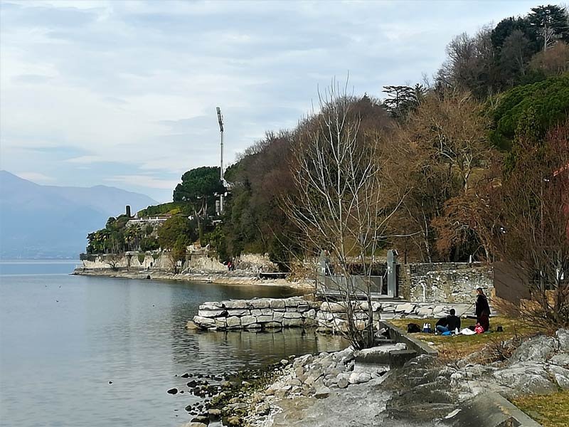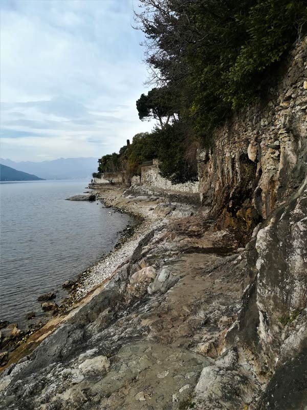 Hinunter zur Seepromenade Amerigo Vespucci führt der Spaziergang gleich nach dem Strand und der kleinen Bar auf der rechten Seite weiter. Auf dem Mäuerchen sind die Liebesgedichte des ligurischen Künstlers Mario Berrino zu lesen. Sie sind eingraviert auf einer Reihe von farbigen Kacheln und lassen die Herzen aller hier vorbeiziehenden Liebespaare höher schlagen. Weiter geht es am Ufer entlang auf abgeflachten Felsabschnitten, die sich mit Kiesstrecken abwechseln. Über kleine Brücken erreicht man ein altes Dock aus dem 19. Jahrhundert. Auf den Laufstegen buchstäblich über den See zu laufen ist ein wunderschönes Gefühl. Die Wellen und das Wasser unter und neben einem empfindet man so nah und man genießt es sozusagen in der Luft zu schweben.