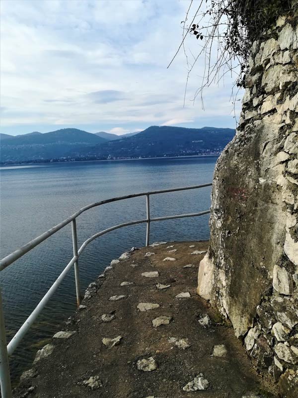 Die Aussicht ist wunderbar, das Panorama umfasst die beiden Ufer bis hin zum Blick auf die Isola Bella mit der Alpenkette im Hintergrund. Nach etwa einem Kilometer verlässt man das Ufer und beginnt an den Villen am Seeufer entlang zu klettern. Man gelangt zu einer Treppe im Wald, die etwas anspruchsvoll, aber gut begehbar ist. Und wieder erscheint ein Hochofen auf dem Grundstück einer Villa. Weiter geht es zur „Fornace in Salvalada“, von wo aus man auf der asphaltierten Straße links zur „Fornace del Pinett“ hinunter geht, mit seinem charakteristischen Steg und dem kleinen Hafen.